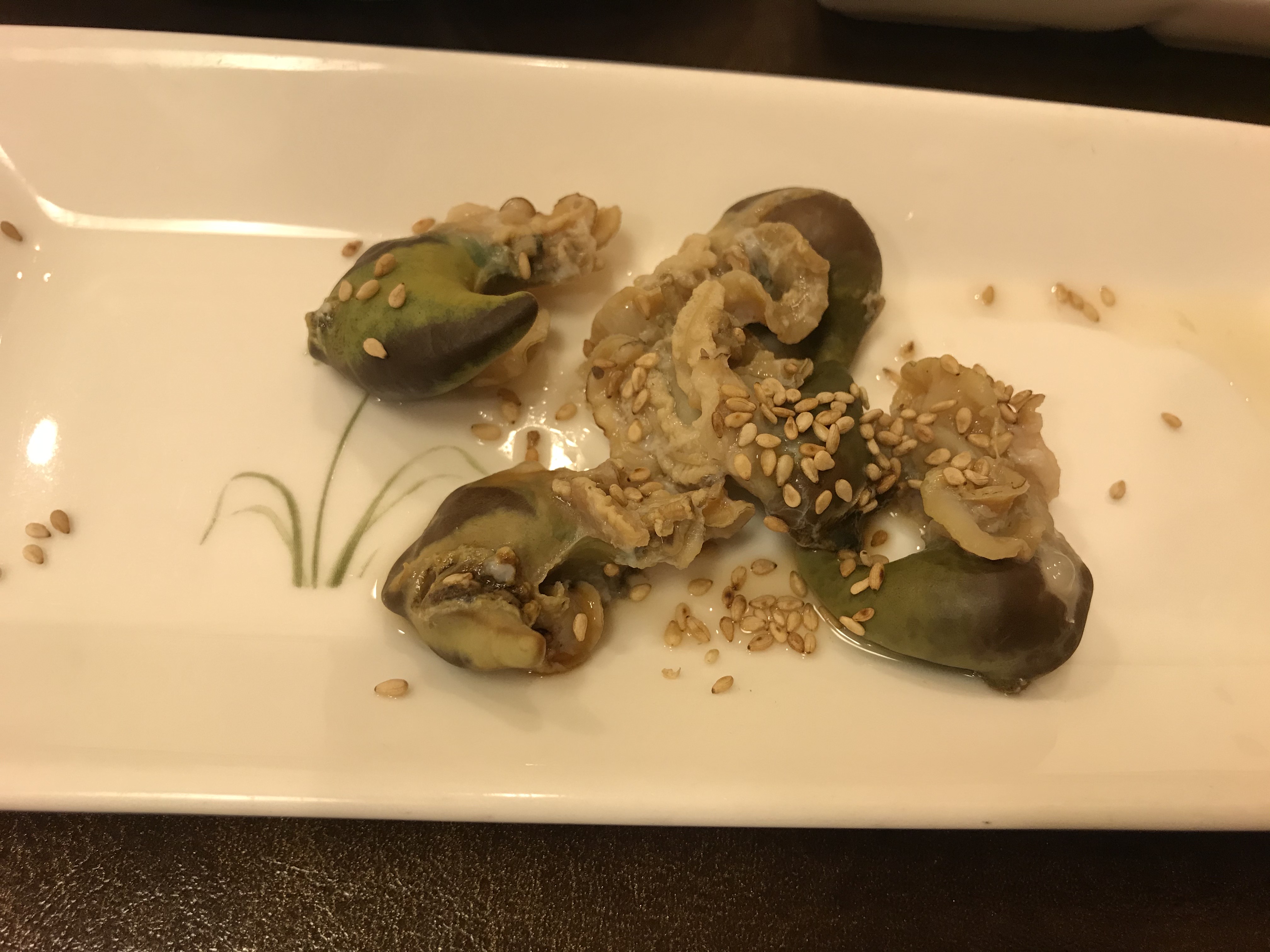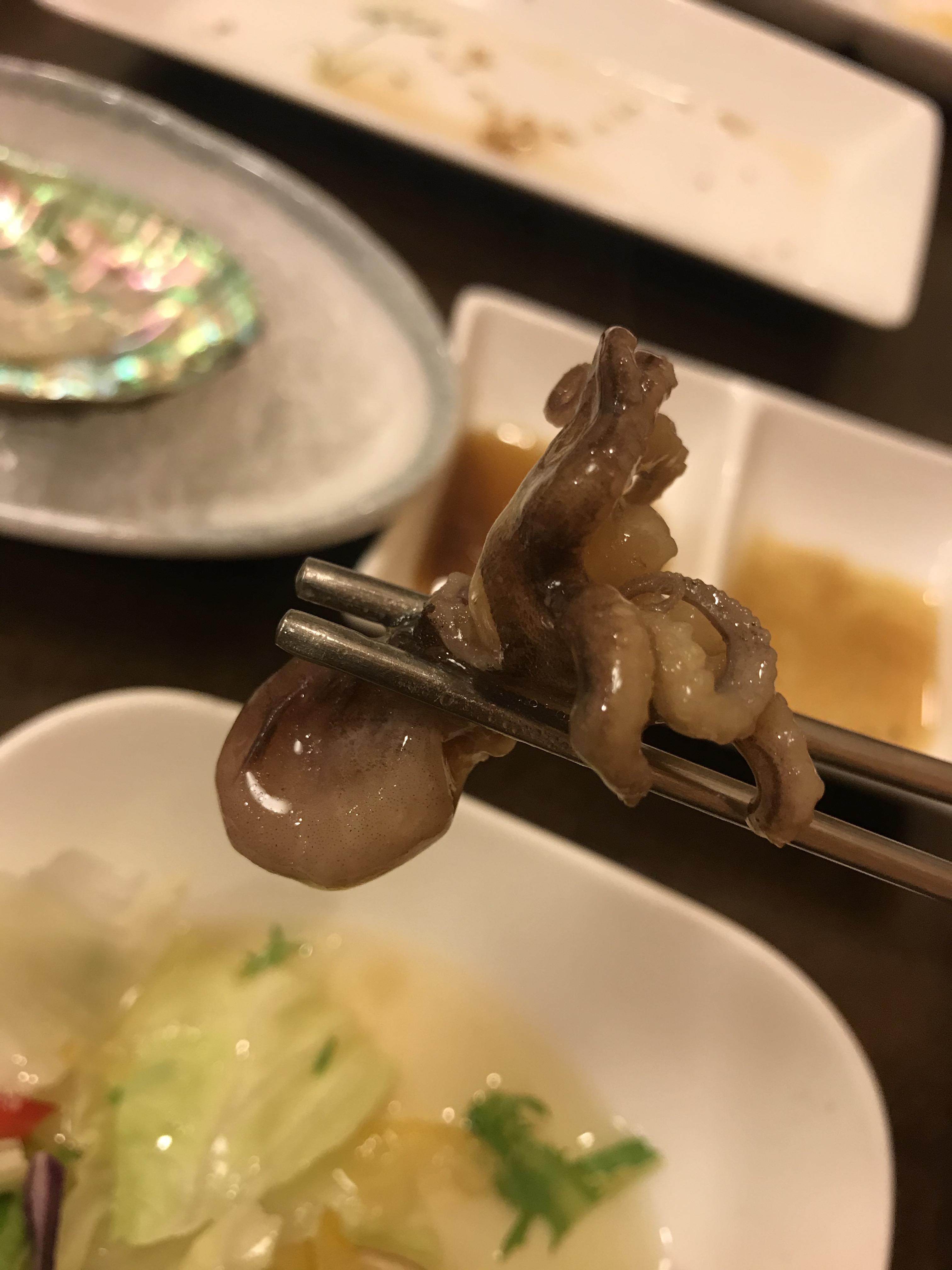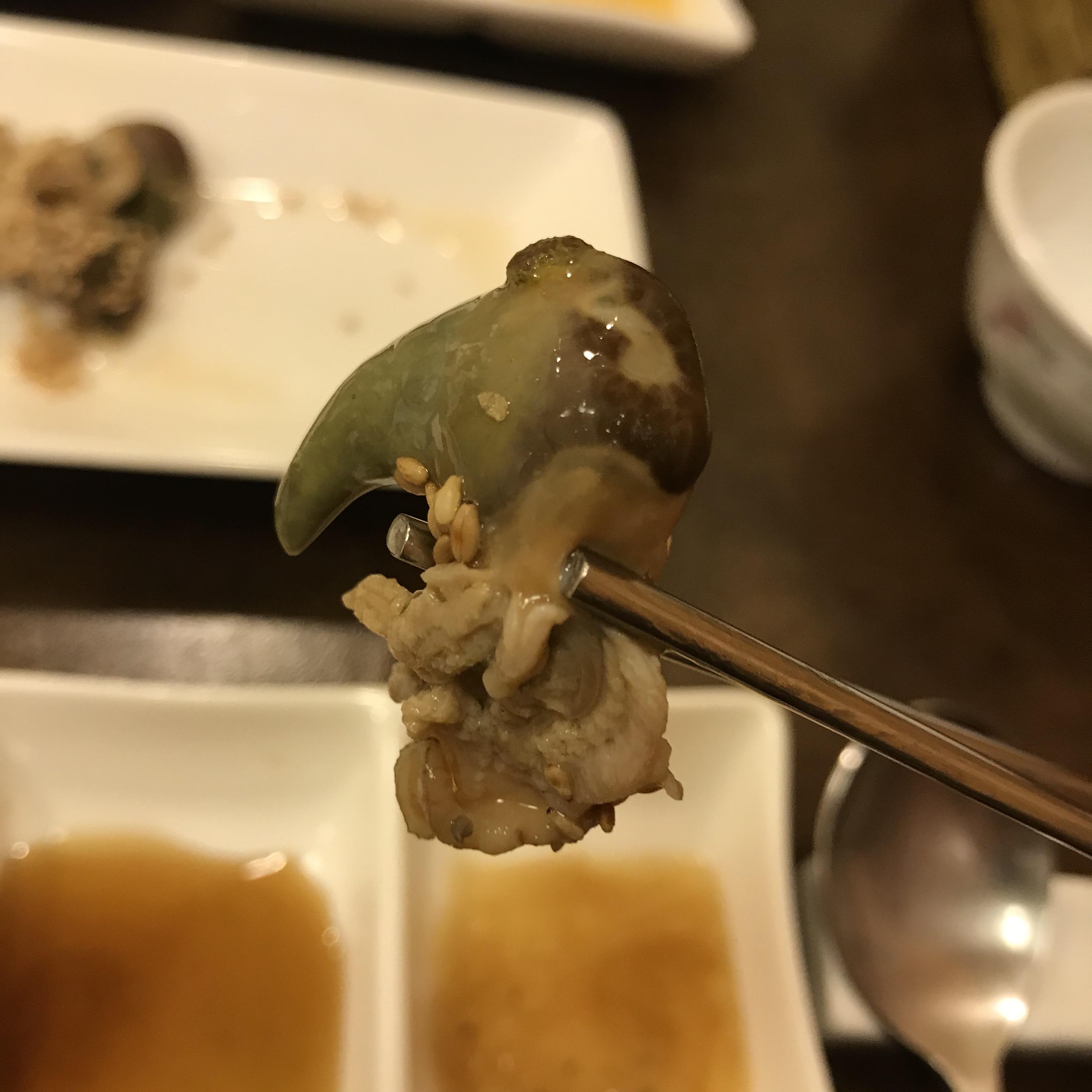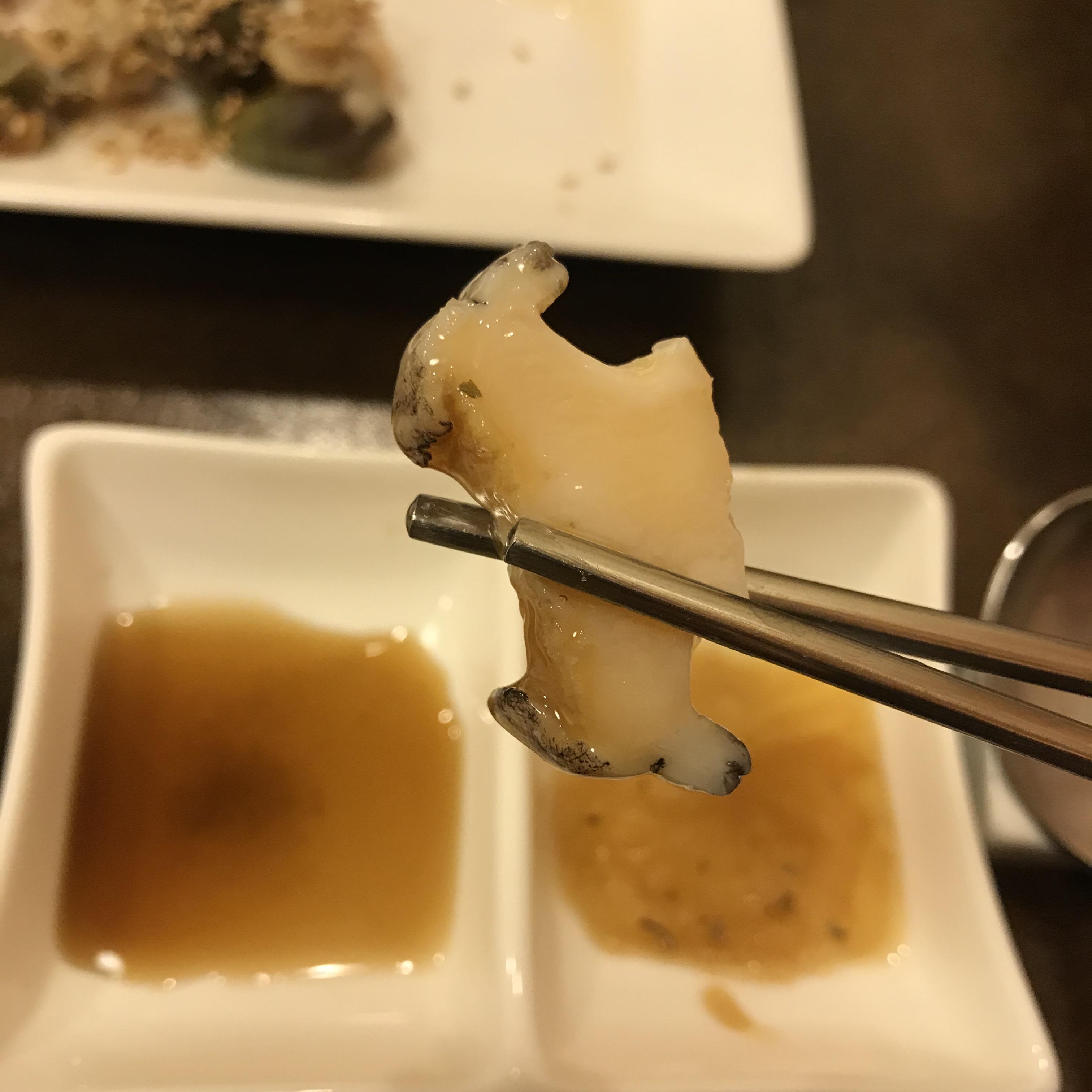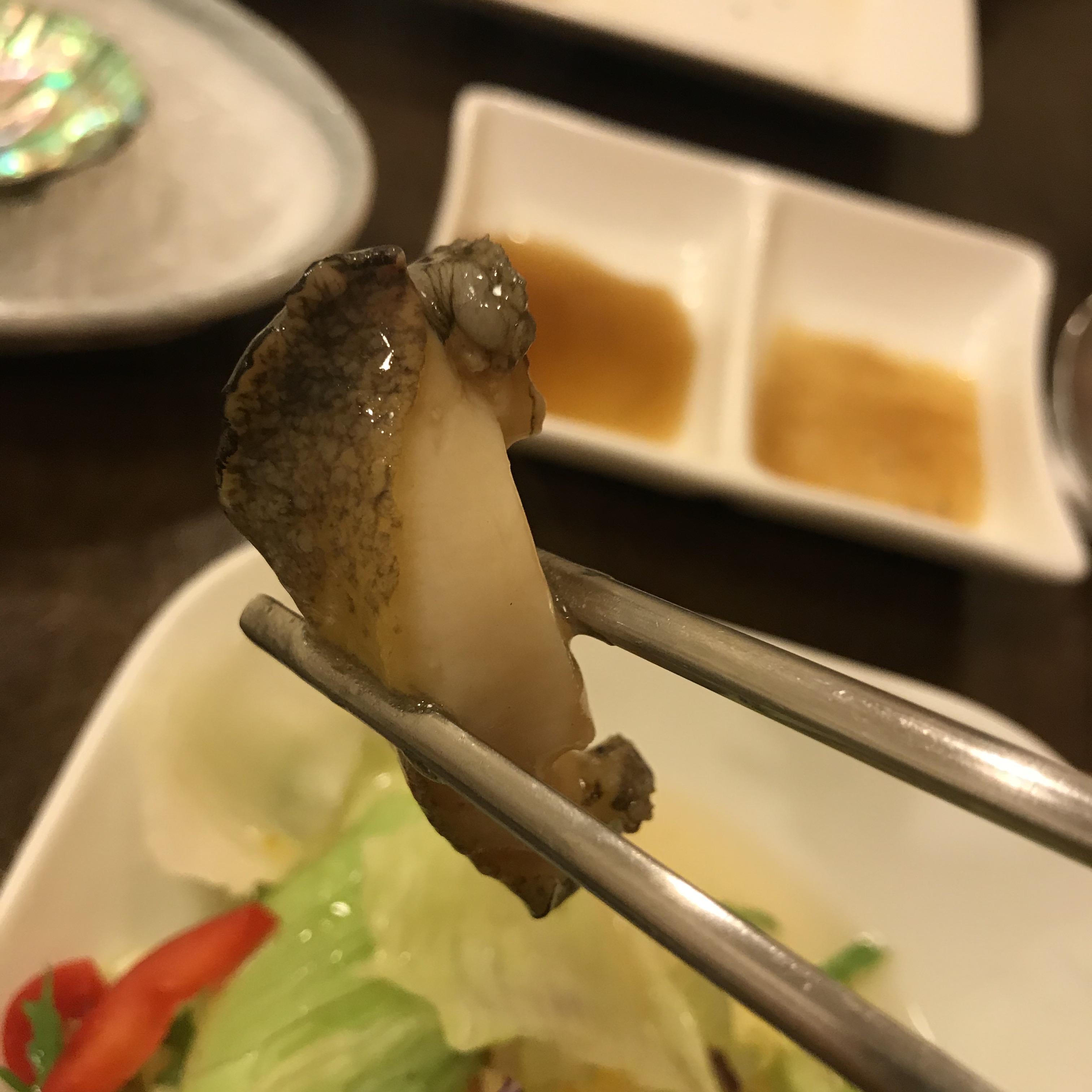 전복 내장, 이건 정말 담백하고 쫄깃쫄깃하다. 소라나 조개의 맛과 비슷한 느낌이었다.