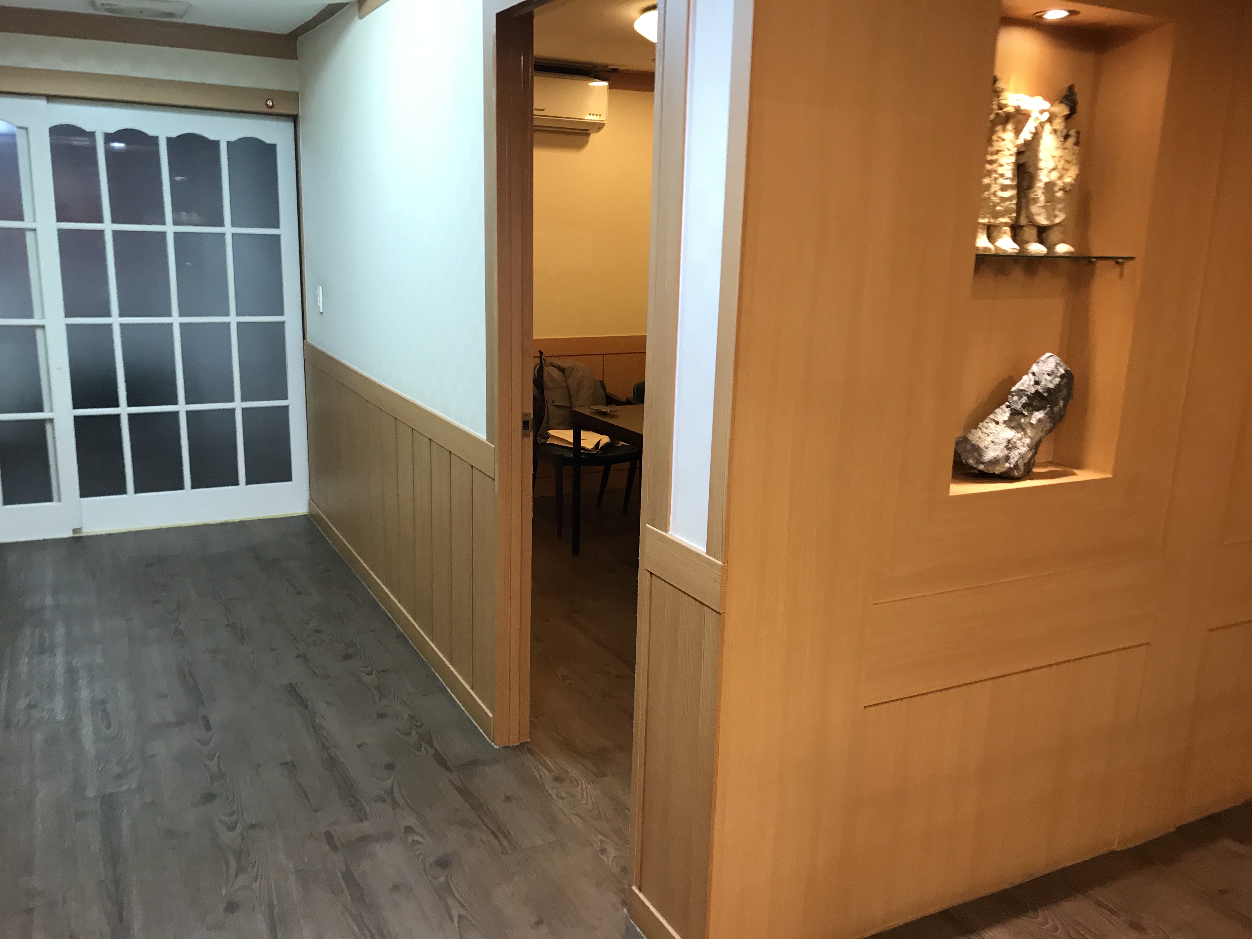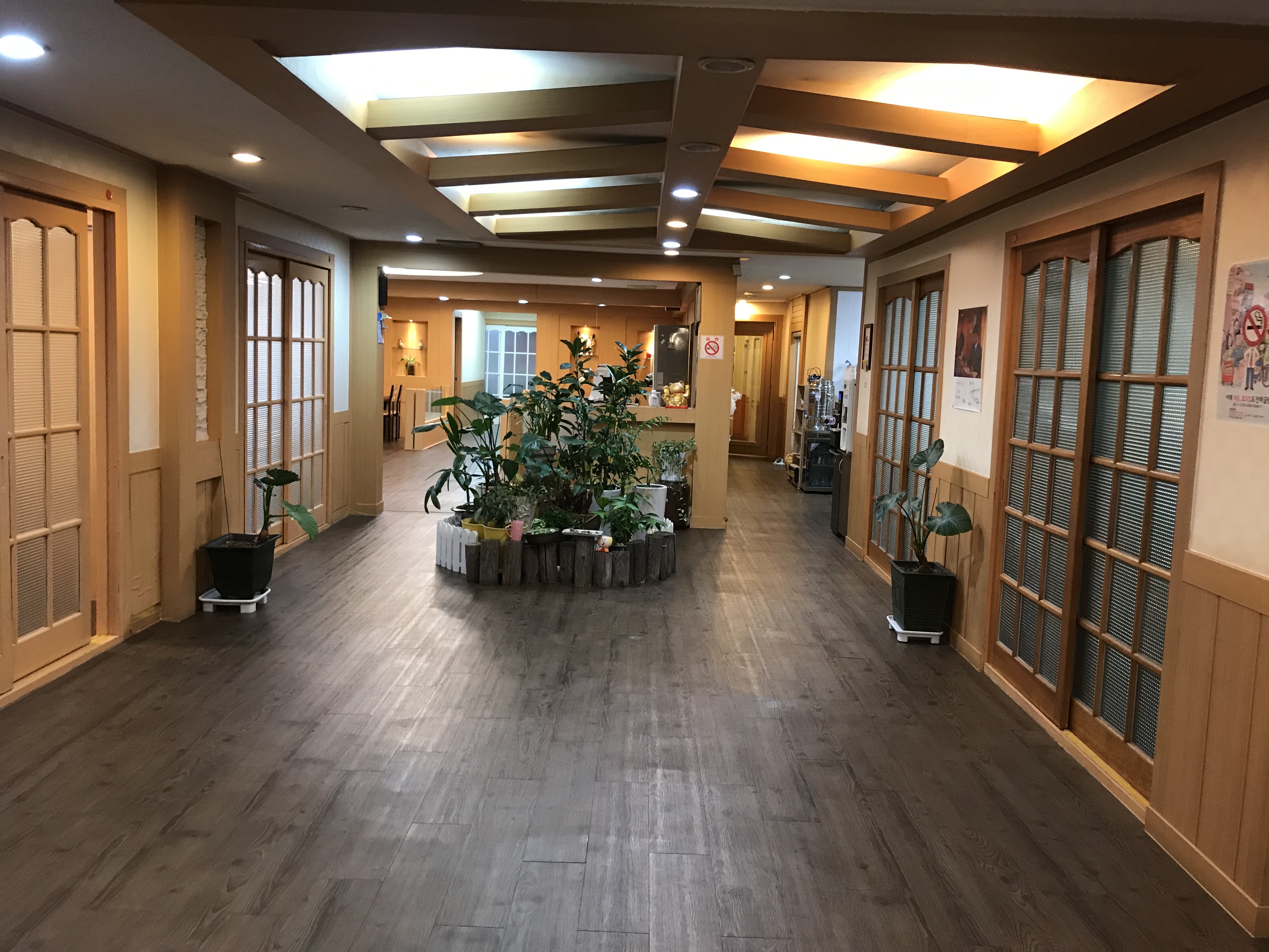 입구 들어서자마자 펼쳐진 홀의 전경. 거실 바닥이라 신발을 벗고 들어갔다. 좌식이 아닌 입식이지만, 신발을 벗는 구조였다.