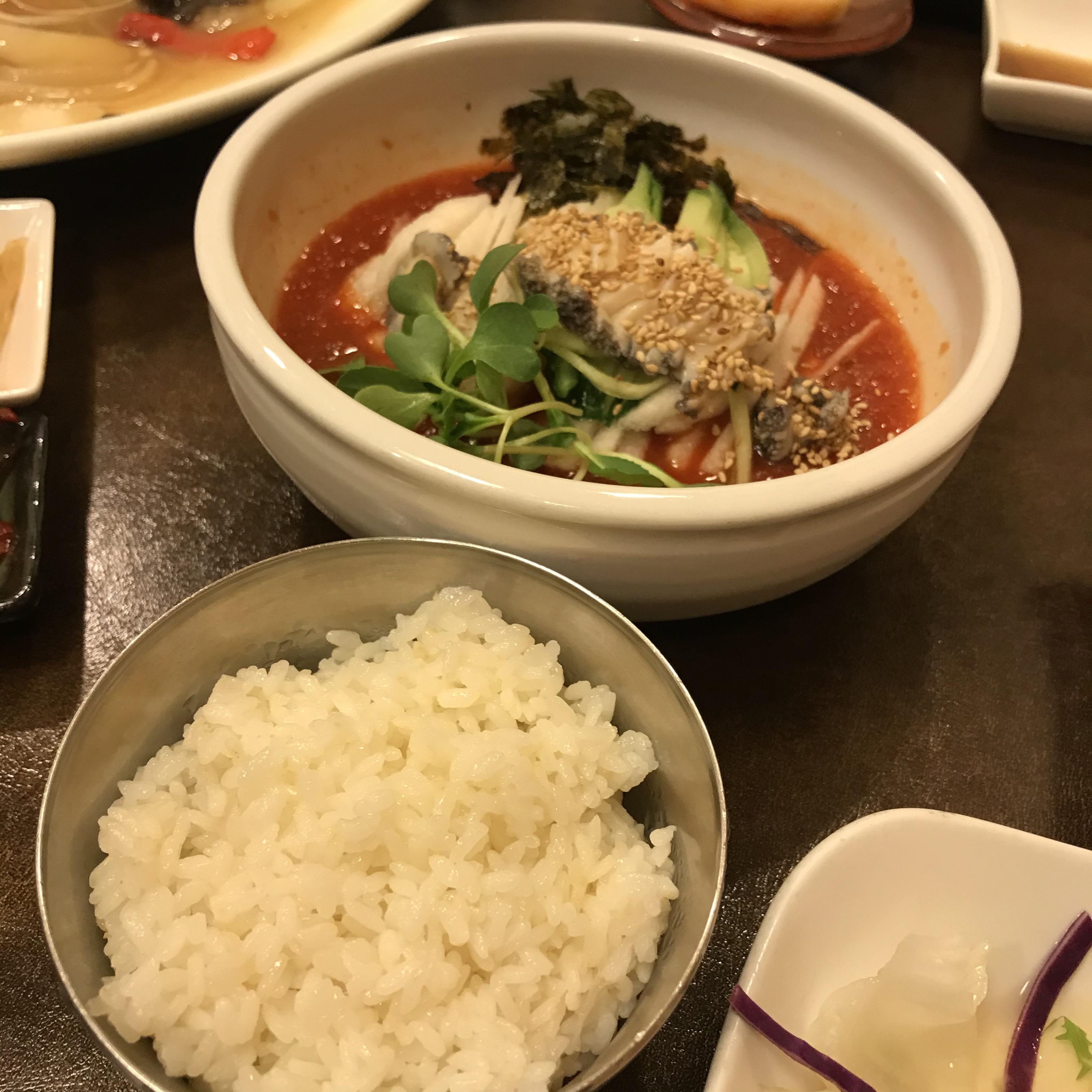 - 물회가 맵다. 매운데 맛있는 편이다. 맛있어서 계속 먹게 되는데, 그래서 입이 더 맵다. 얼음이 동동 뜬 물회를 매운 감 때문에 호호 불면서 먹었다.