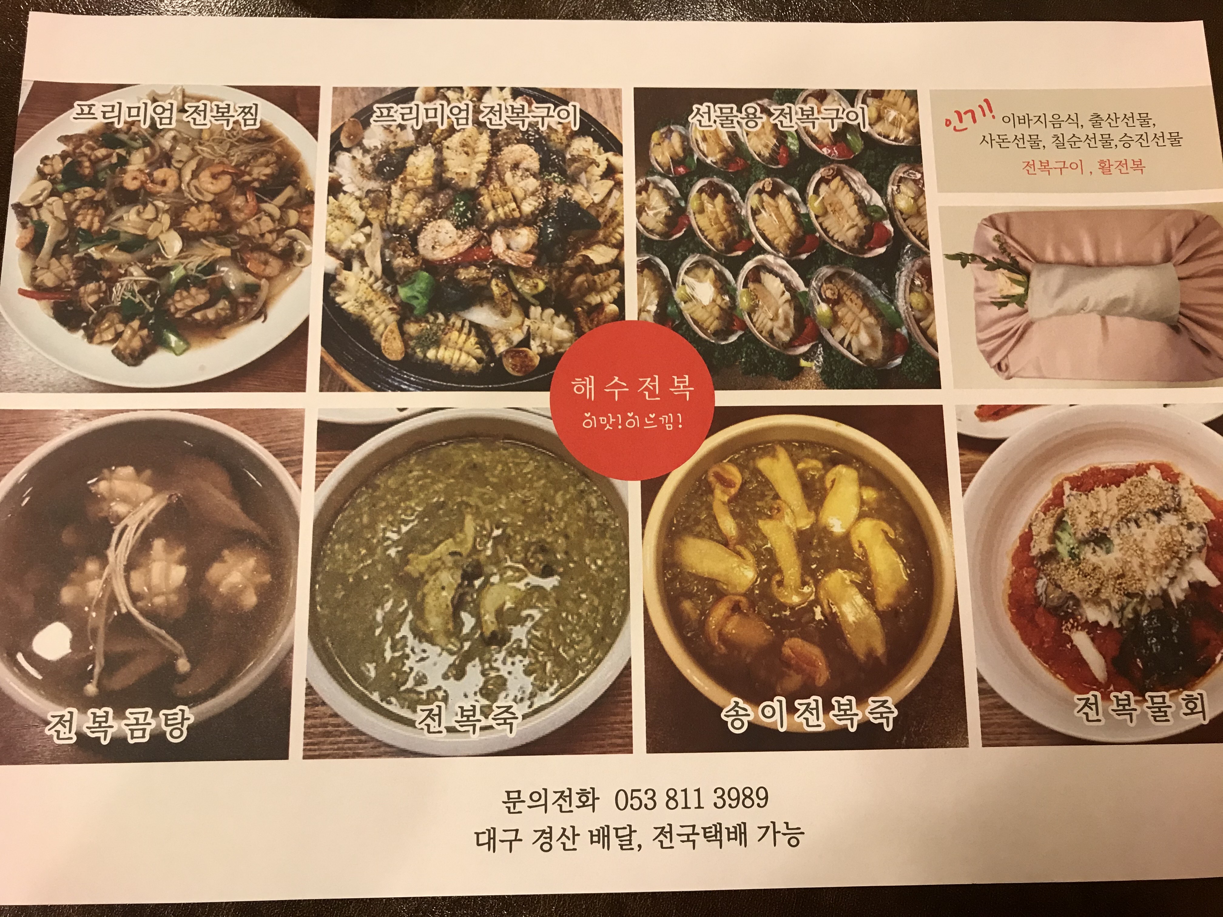 간만에 축하할 일이 있어서, 평소와 다른 메뉴를 먹고 싶었다. 자주 먹지 않은 메뉴를 생각하다가, 오다가다 지나가면서 본 꽤나 오래된 전복 요리 전문점이 떠올라 고르게 되었다. 한 번도 가보지 못했지만, 오랫동안 단일메뉴로 한 자리를 차지하고 있는 식당이라 기대를 갖고 찾아가게 되었다. 바로 경산시 중방동에 위치한 '해수 전복'이다.