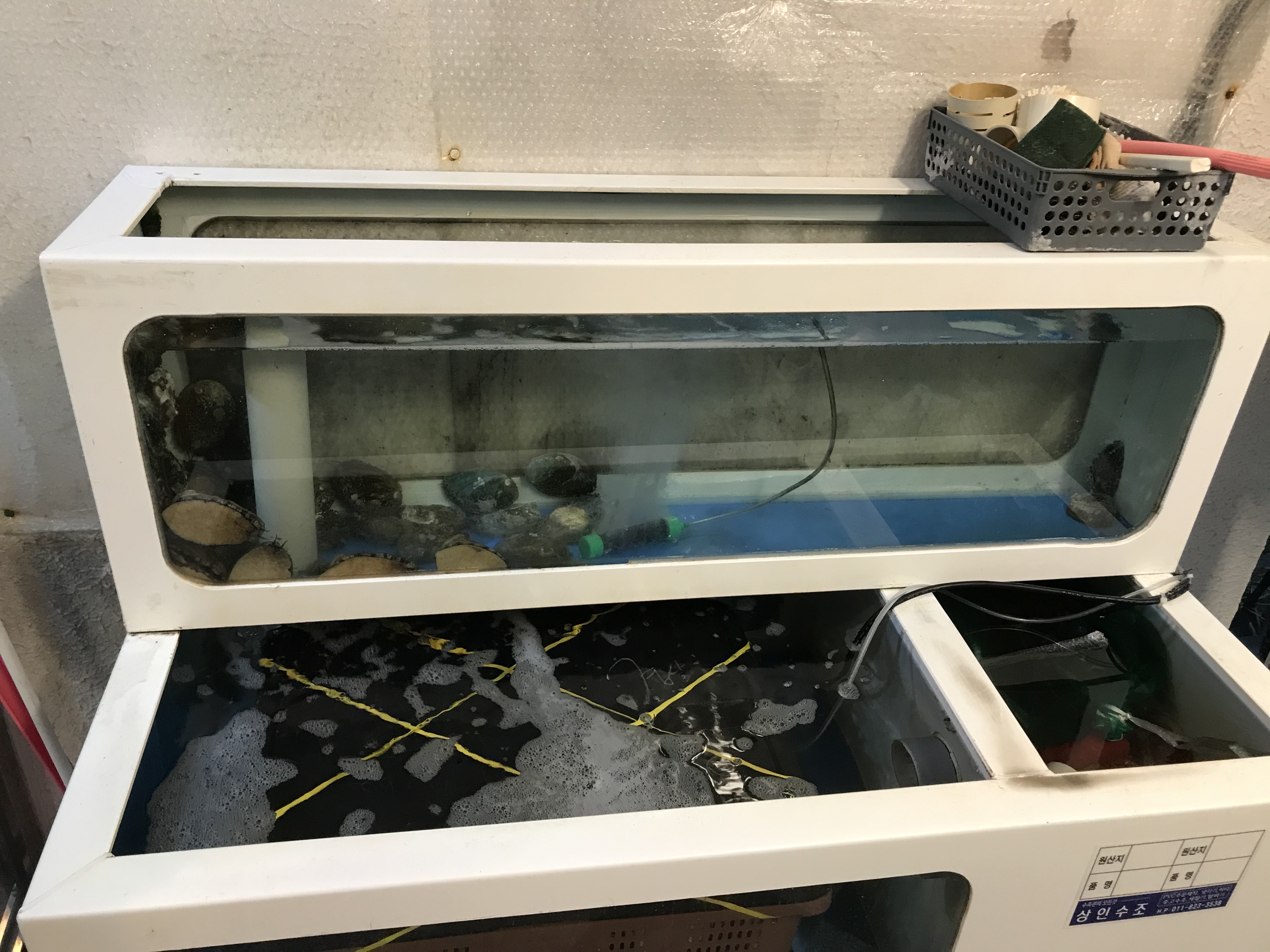 입구 수조에 있던 전복들이 우리를 반겼다.