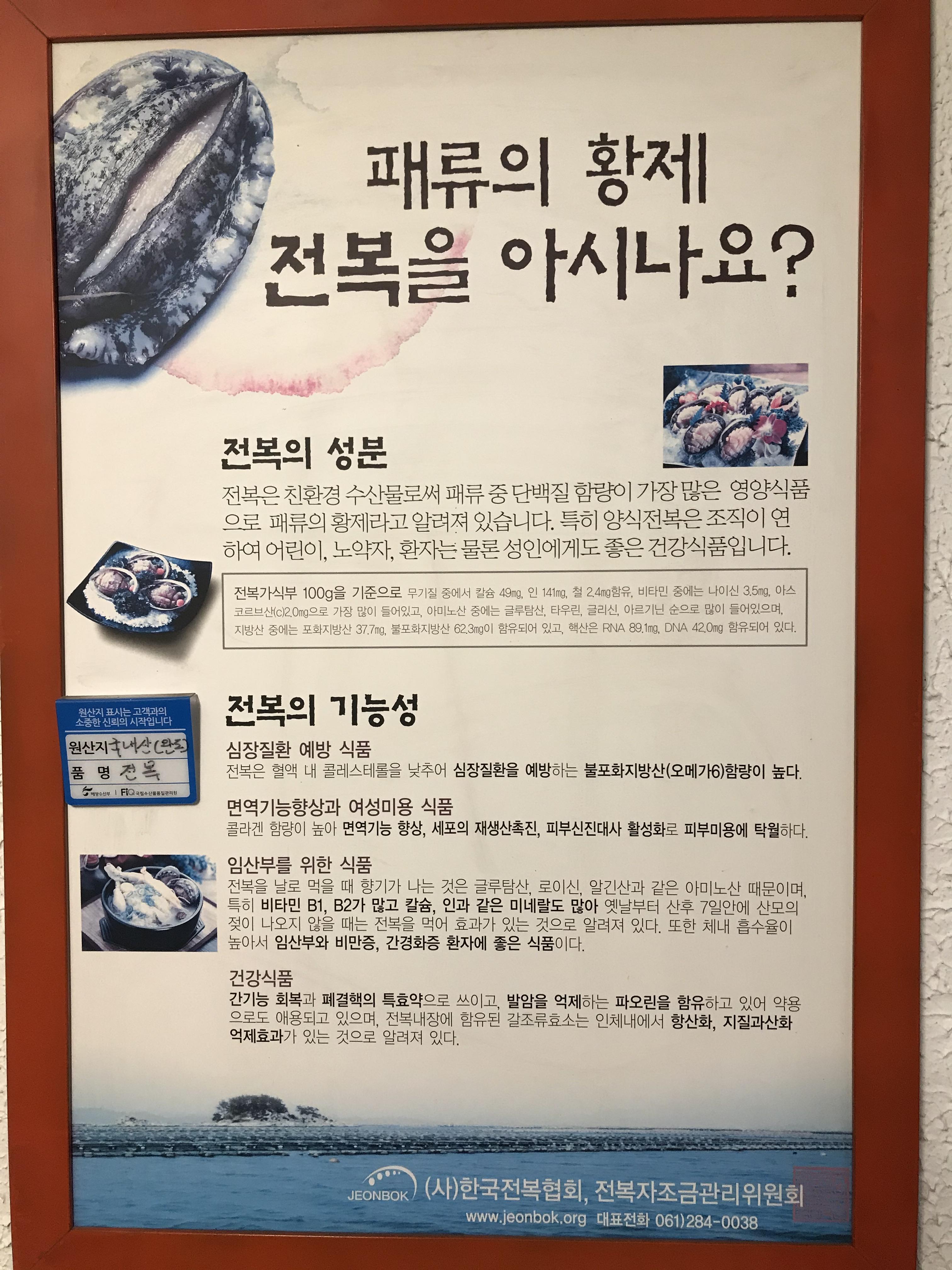전복에 대한 설명 포스터가 걸려있었다.