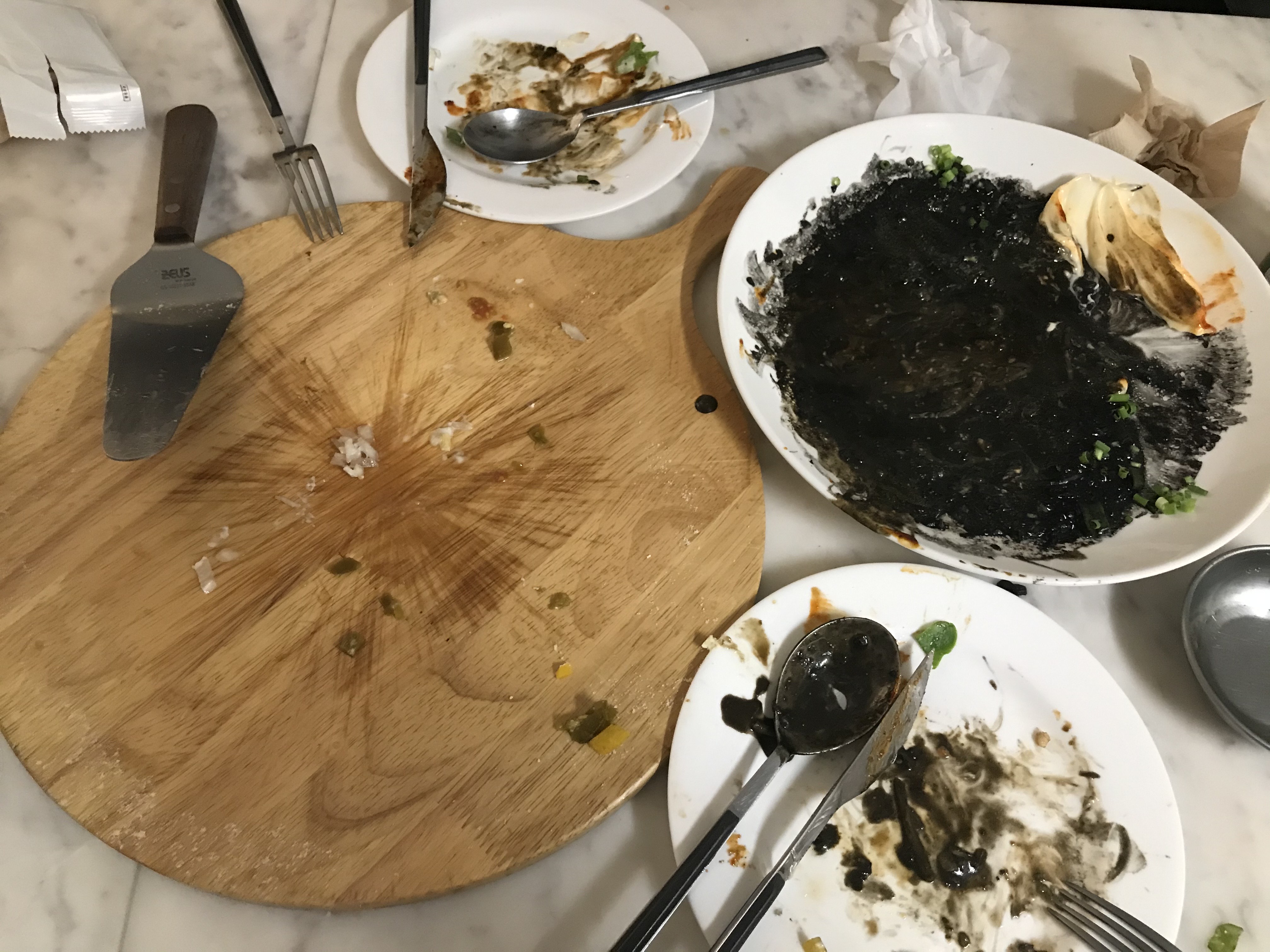 찐맛집이라는 증명으로 접시를 다 비운 경우 기념으로 보여주는 빈 그릇 샷. 먹물 파스타라 다소 지저분해보이긴 하나, 맛있게 정말 잘 먹었다. 맛있는 저녁식사였다.