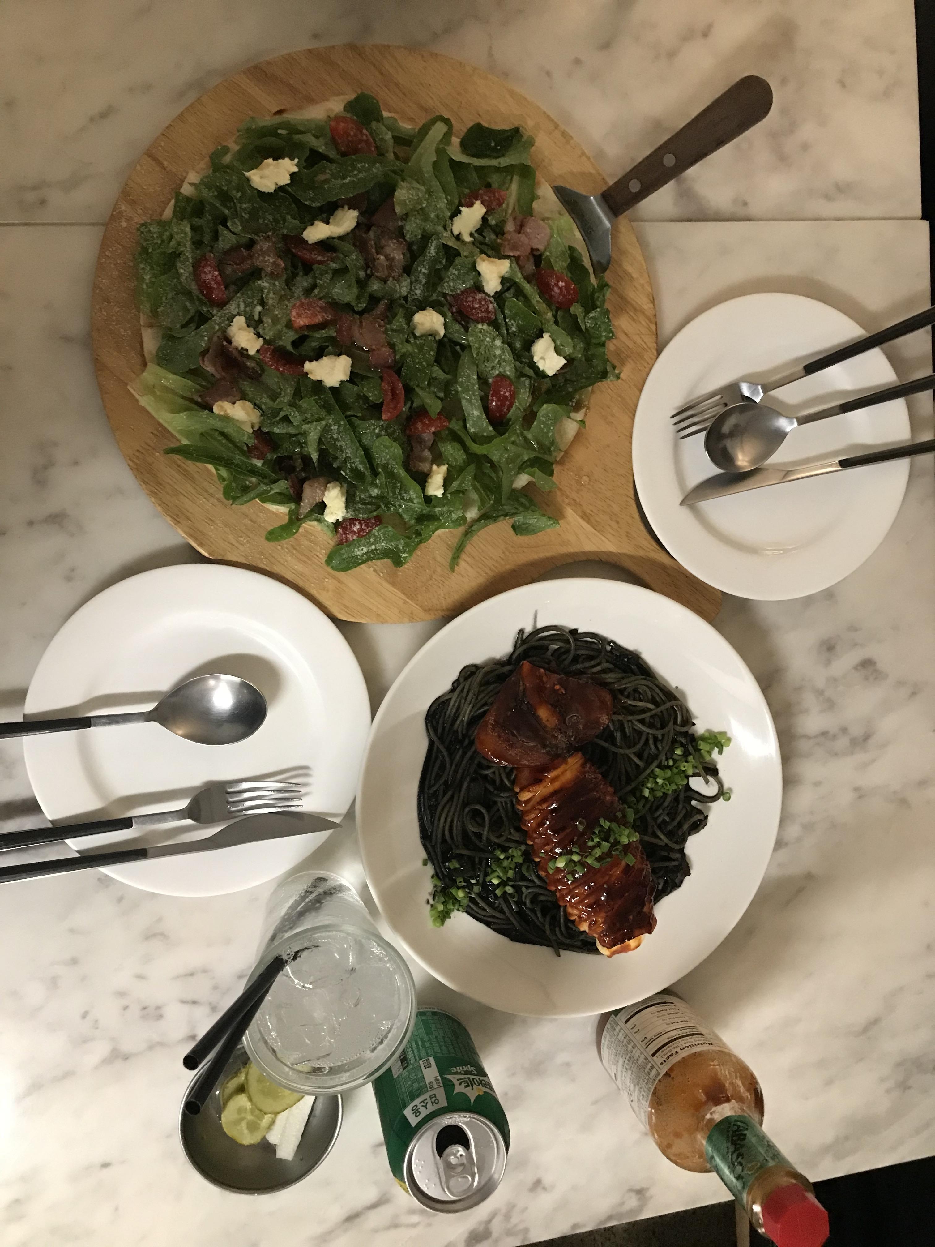 통오징어 먹물 파스타. 매운음식 잘 못먹는 내게 조금 매운 편이었지만, 그럼에도 불구하고 먹을 수 있을 정도로 맛있게 맵다고 느꼈다. 맥주랑 정말 잘 어울릴 것 같다고 생각했지만, 주로 데이트할 때는 음주를 하지 않는 편이라 참았다. 언젠간 운전을 가르친 후에는 자유롭게 맥주를 마시고 싶다는 생각을 했다.