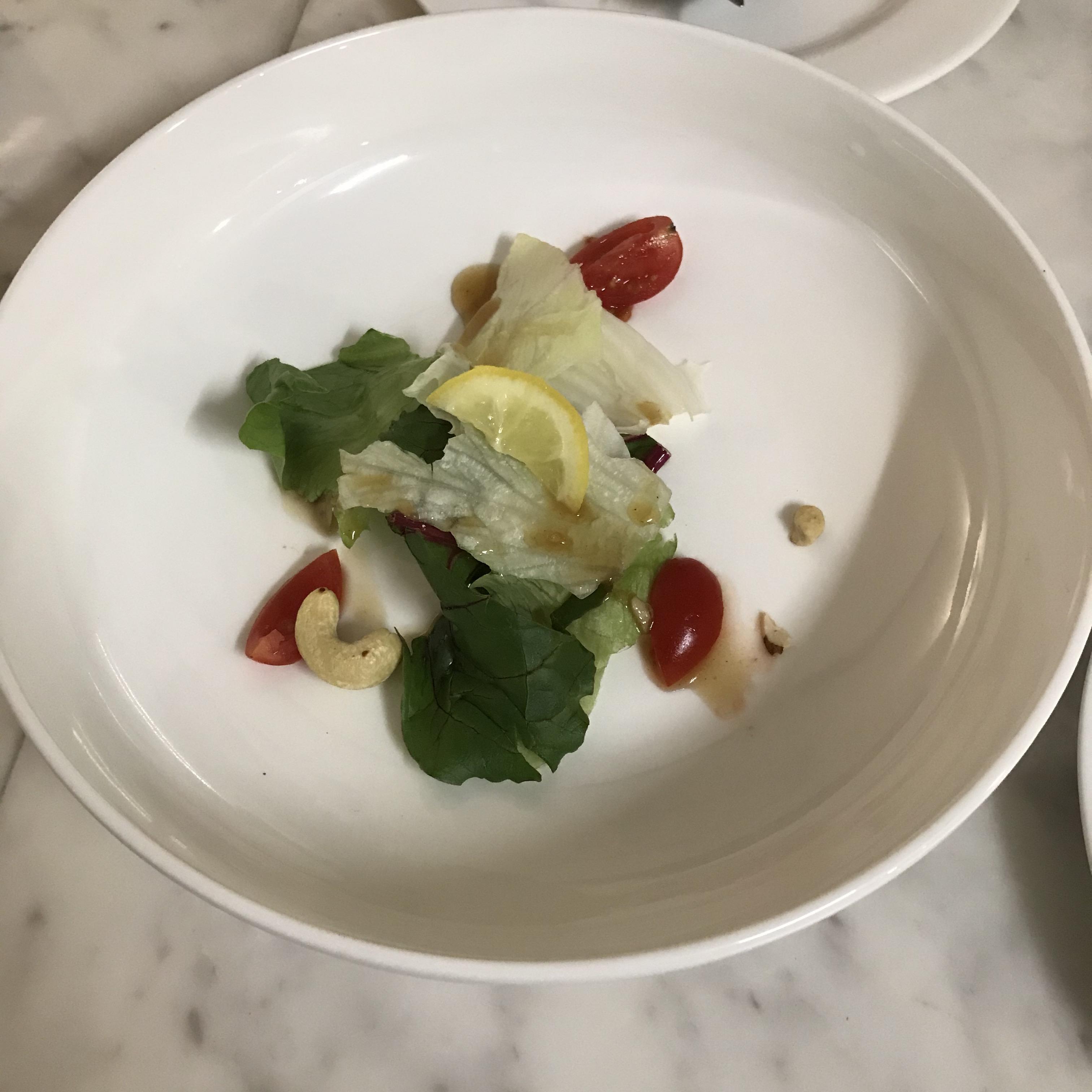 전채로 나온 발사믹 소스를 뿌린 샐러드, 양이 너무 적었다. 인당 하나씩 준 것도 아니라 조금 애매한 느낌.
