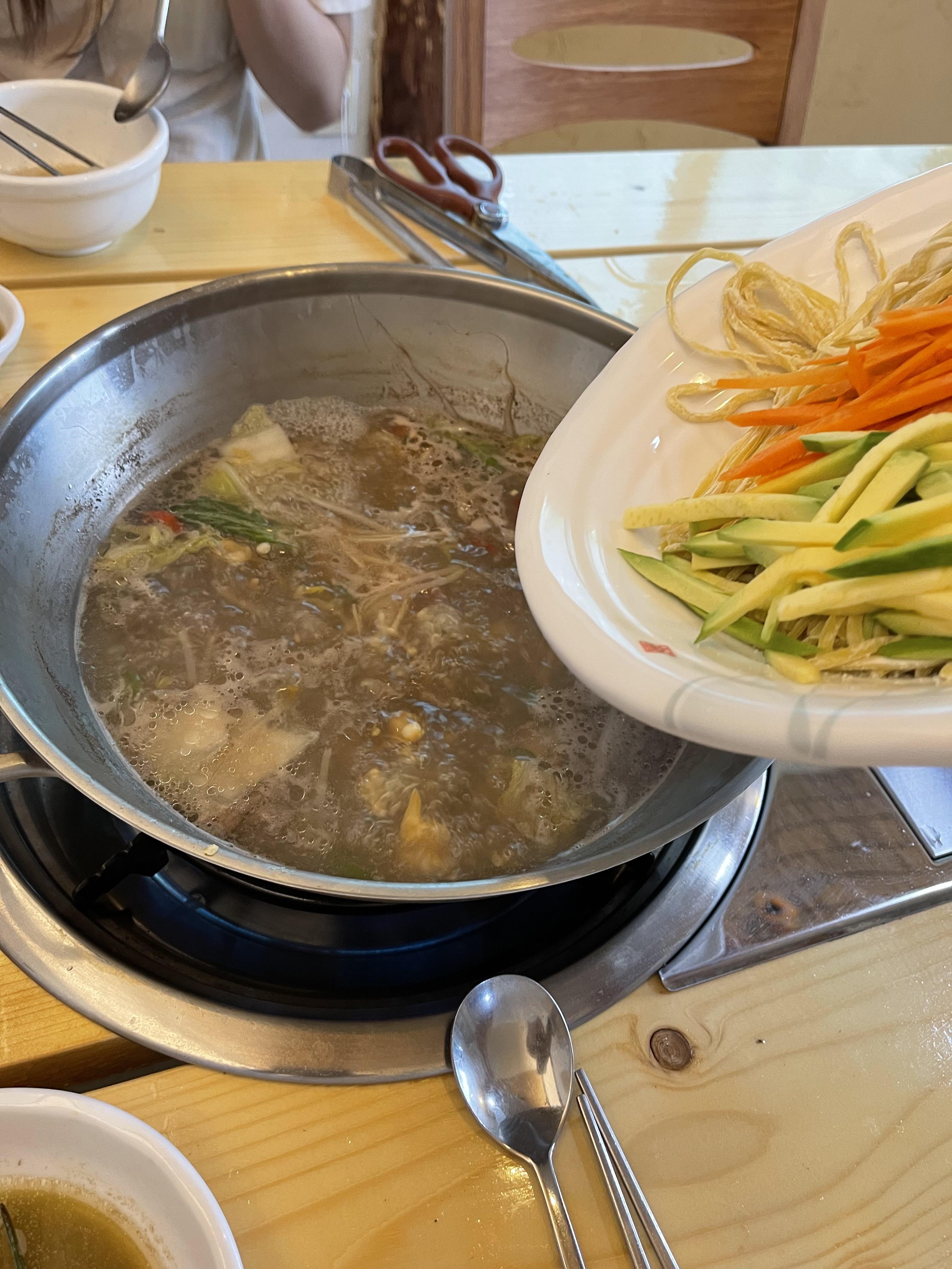 - 음식 : 맛있음. 조개가 너무 많이 들어가있어서, 국물이 제대로임. 소고기도 군위 한우를 사용한다고 해서 그런지, 수입소고기 샤브샤브와는 조금 다른 고기맛이었음