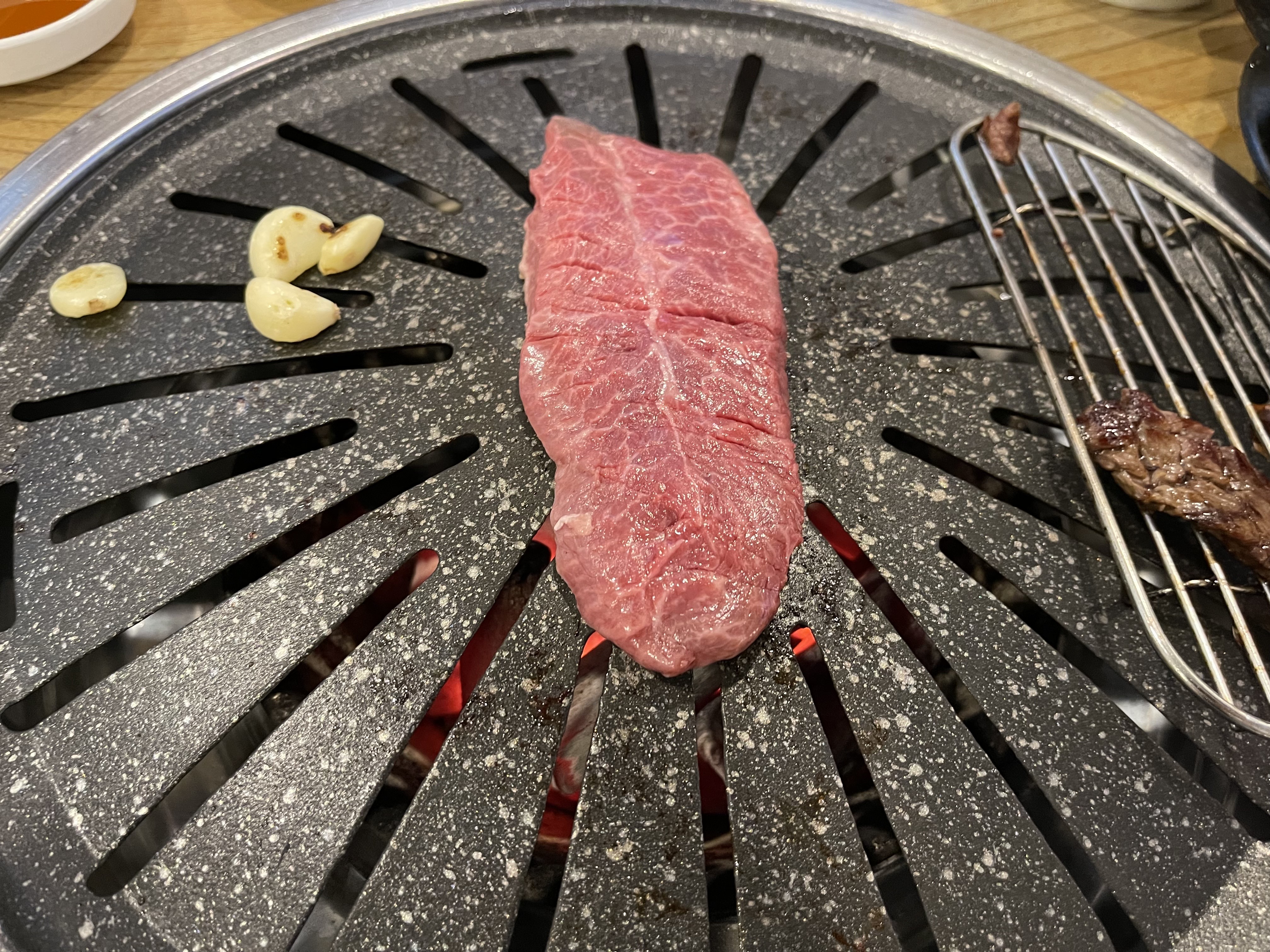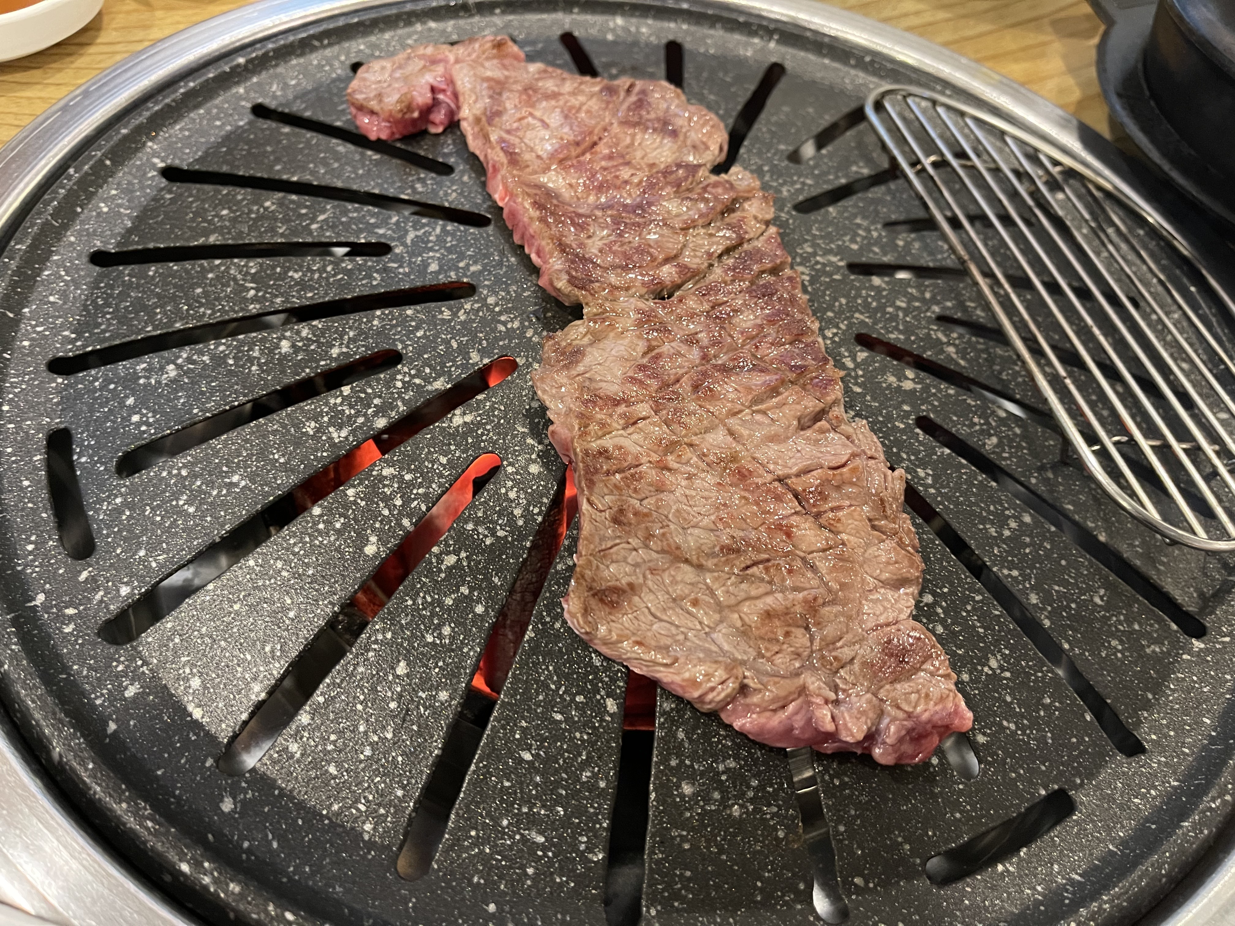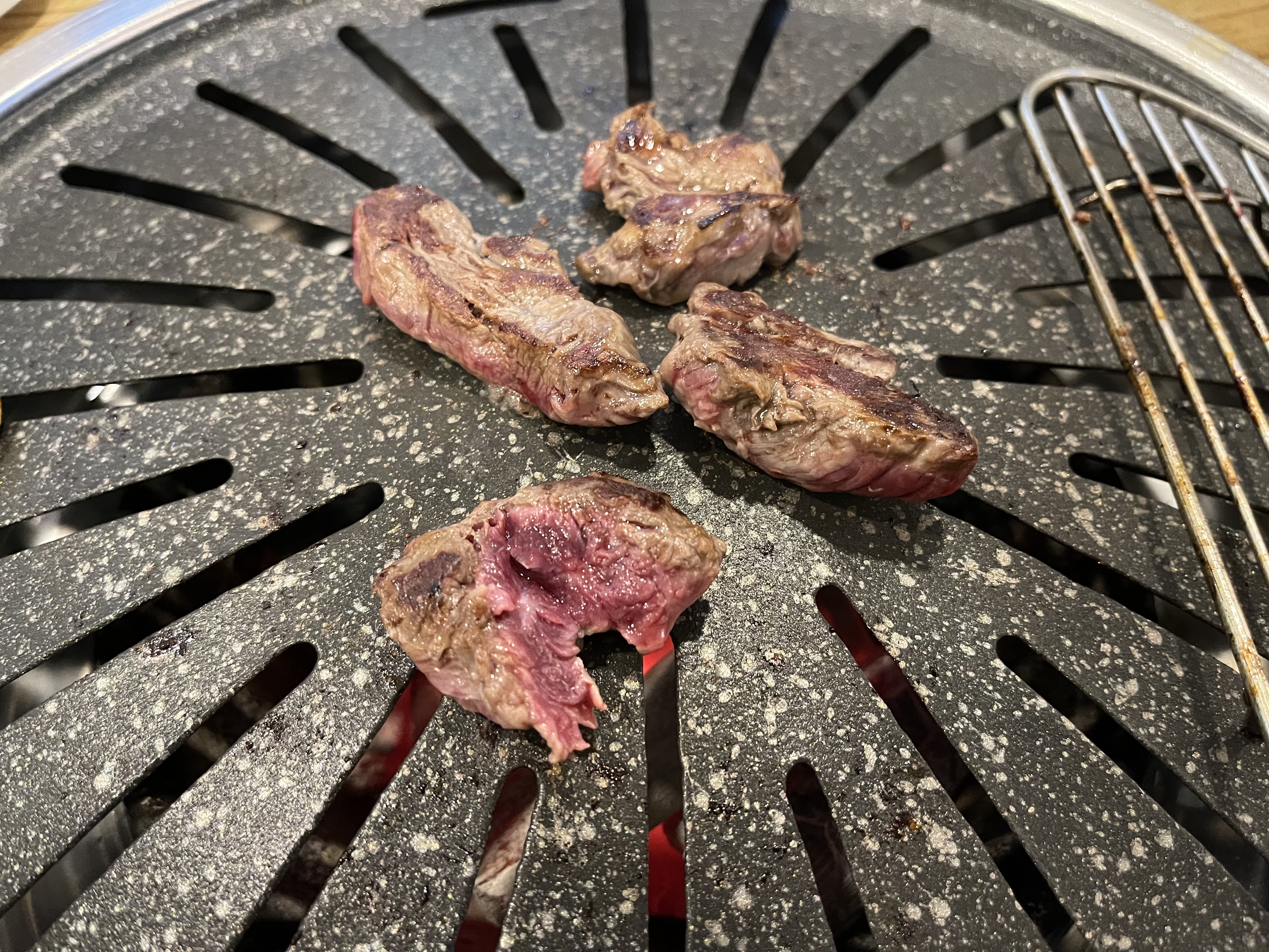 노릇노릇 구워지는 고기와 냉면, 밥과 된장찌개로 든든하게 식사를 마무리할 수 있었다. 위에서 약간 허풍을 떨긴 했지만 사실 특수부위 모둠 600g은 89,000원이라는 가격도 세고, 둘이 먹기에는 조금 많은 양이기는 했다. 게다가 갈비살 같이 기름진 부위가 아닌 기름기가 없는게 대부분이라 한우 특유의 미끄럽게 넘어가는 목넘김보다는 담백하고 쫄깃한 식감을 많이 느낄 수가 있다는 점에서 호불호가 갈릴 수 있다고 생각했다.