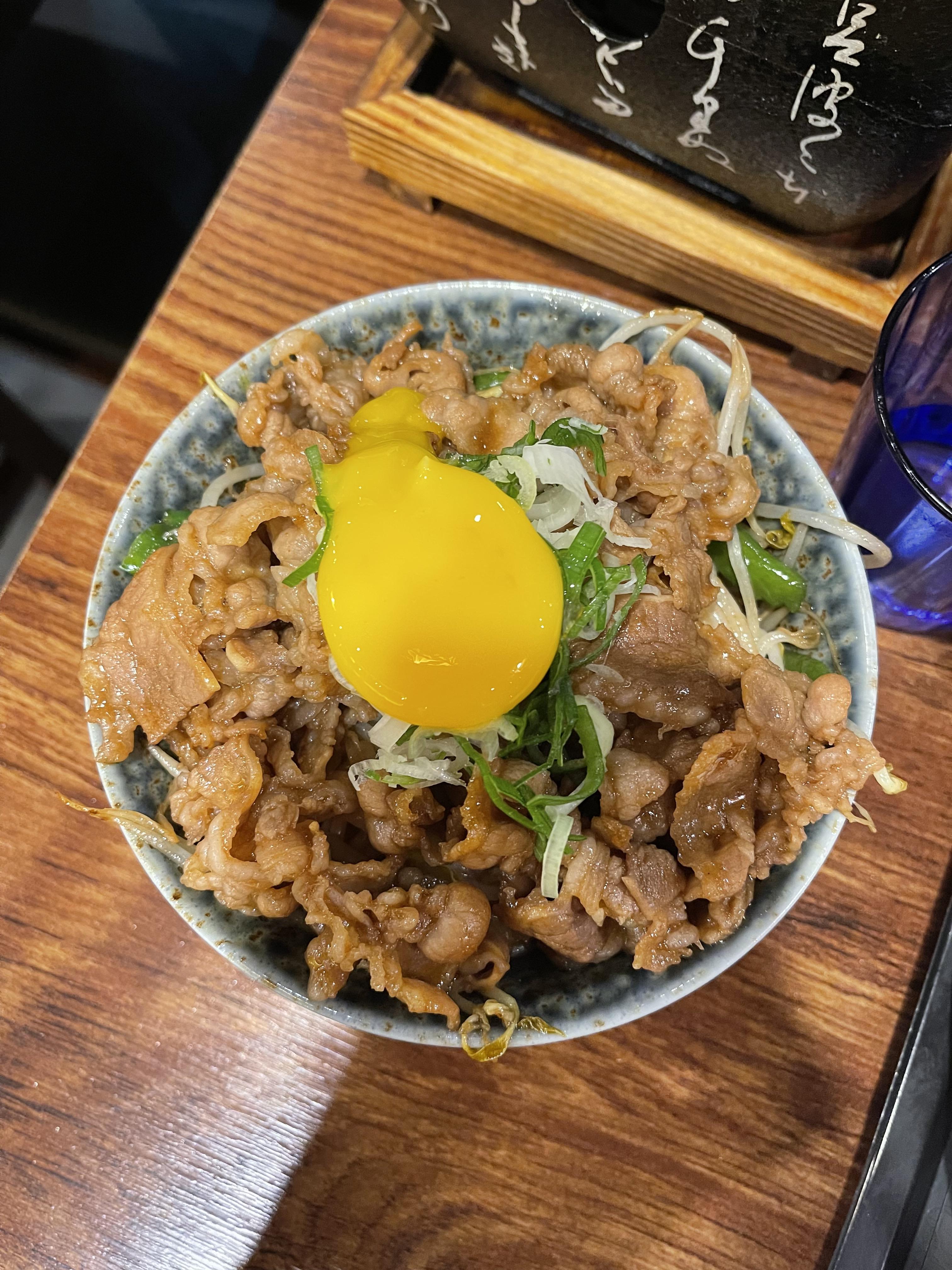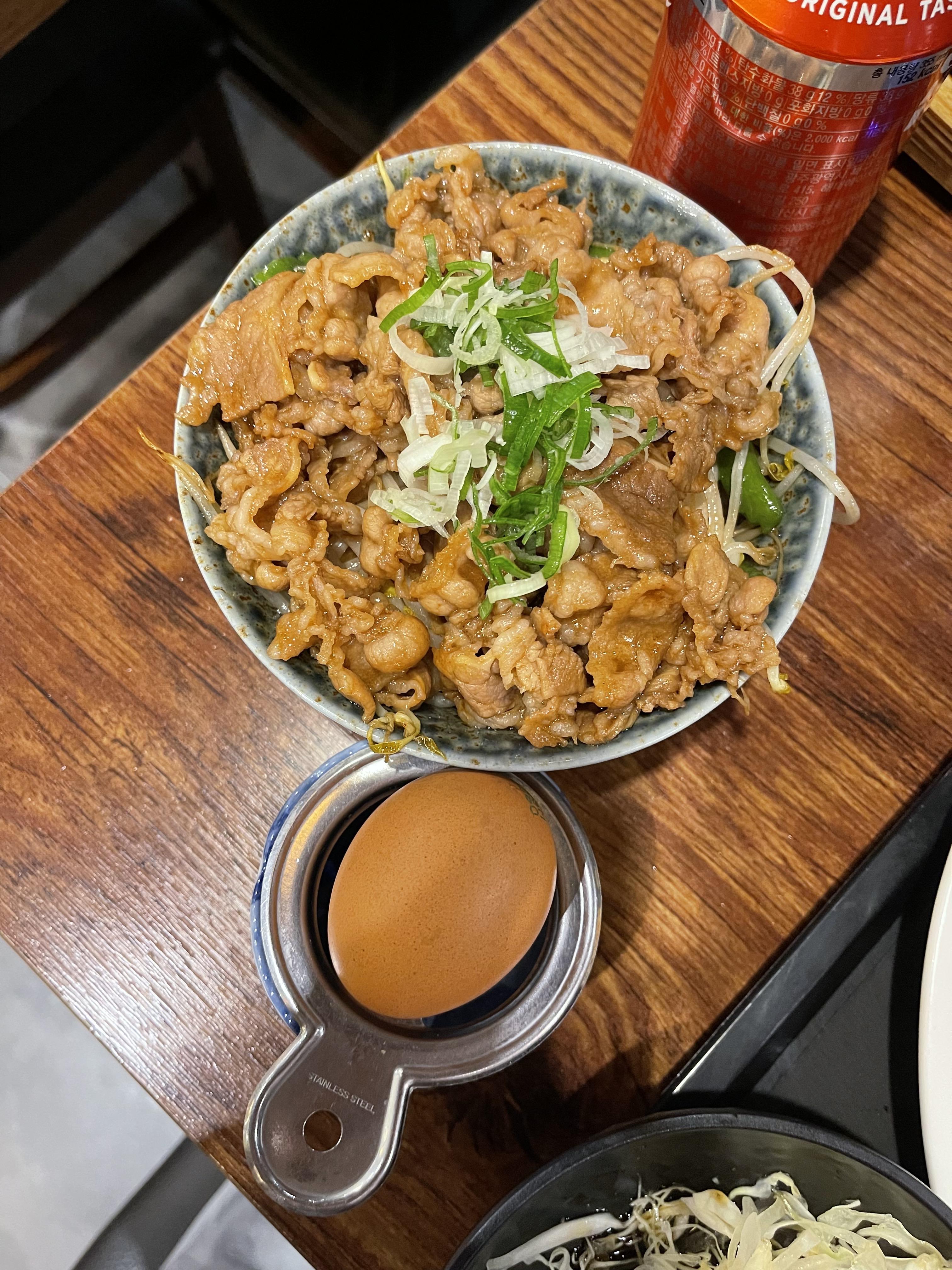 한참 식사를 하다가 우삼겹 덮밥이 나왔다. 날달걀을 풀어서 비벼 먹으라고 했다.