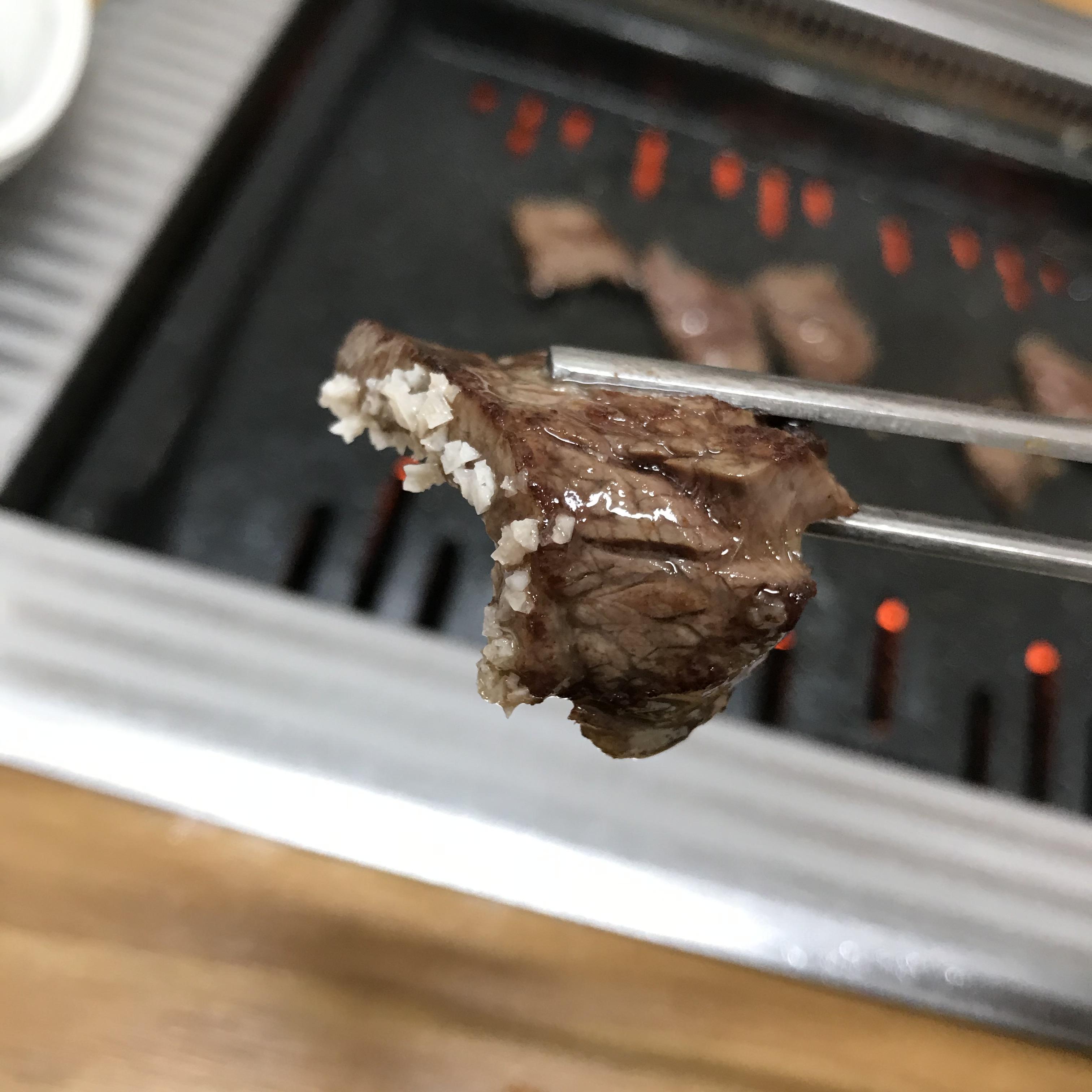 이건 다른 거 필요없다. 소금만 있으면 된다. 소금을 살짝만 찍어서 한입하면, 정말 육즙이 뿜어져 나오면서 부드러운 한우 식감이 정말 맛있다. 육향이 진하다. 참을 수가 없다.