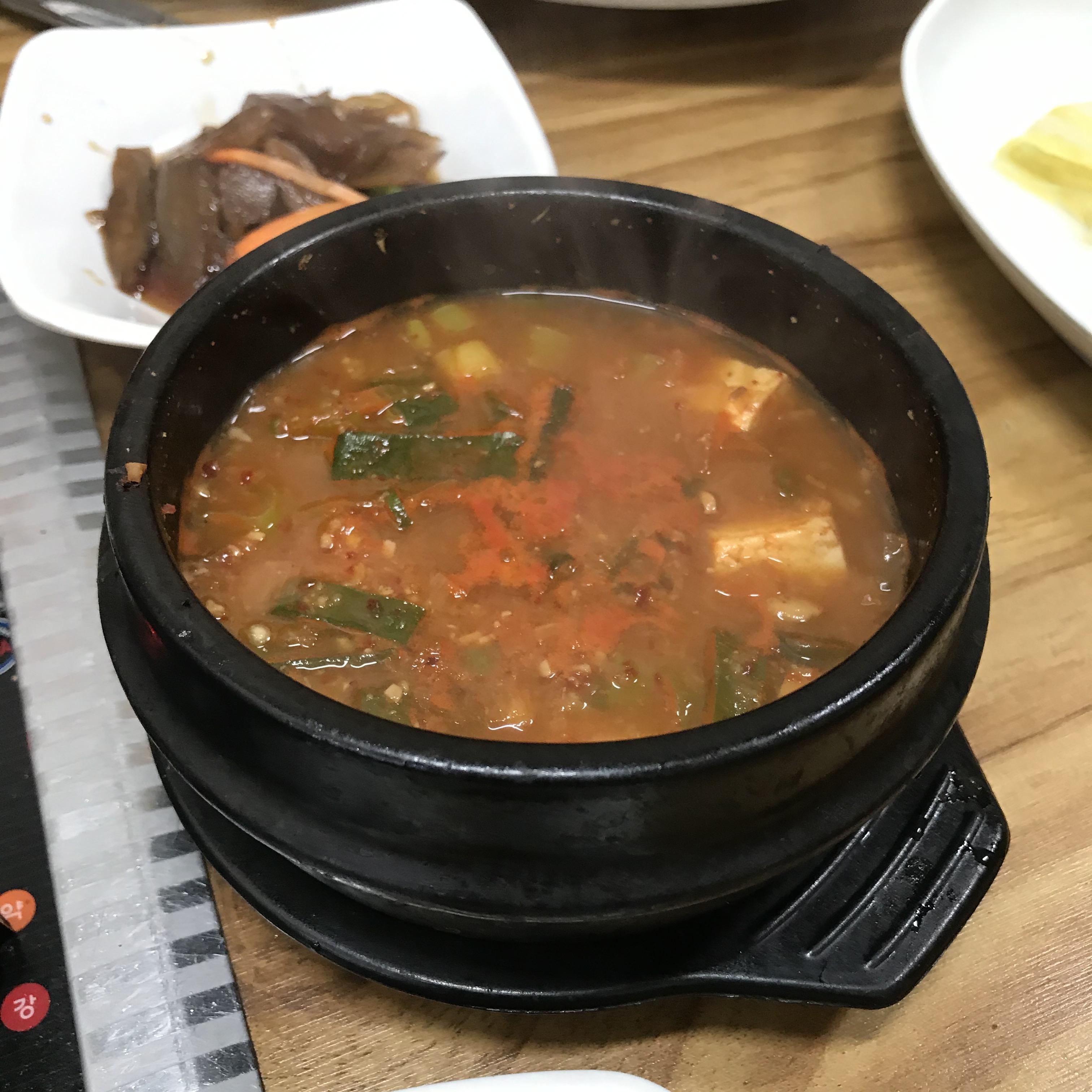 한우라면 한 20인분은 먹을 수 있을 것 같지만, 외벌이 서민경제의 지갑은 그걸 허락하지 않았다. 식사의 마무리는 된장찌개로 한다. 여기 된장찌개도 맛있다. 딱 내 취향이었다. 고깃집 된장찌개가 낼 수 있는 가장 맛있는 맛의 된장찌개였다.